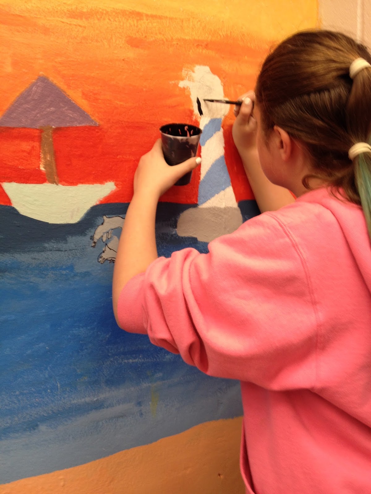 Thank you so much for coming to check out our mural! This took 6 weeks and all drawing and painting was done by our 4th and 5th grade Mural Makers. Thank you for helping beautify the teacher's room!